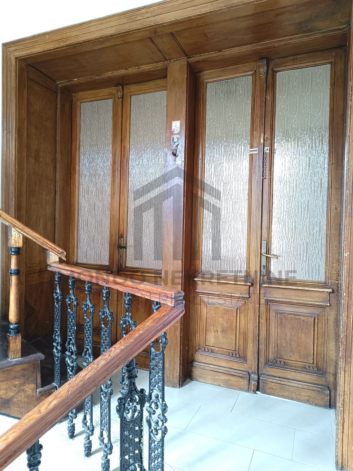 The total living area is 161.76 m2, distributed over the ground floor, first floor, and attic. The first floor features a spacious three-bedroom apartment with preserved original elements such as oak parquet flooring, wall frescoes, large wooden partitions with internal doors, and wooden stairs leading to a tower room with access to a flat terrace. The terrace offers a perfect outdoor relaxation area.