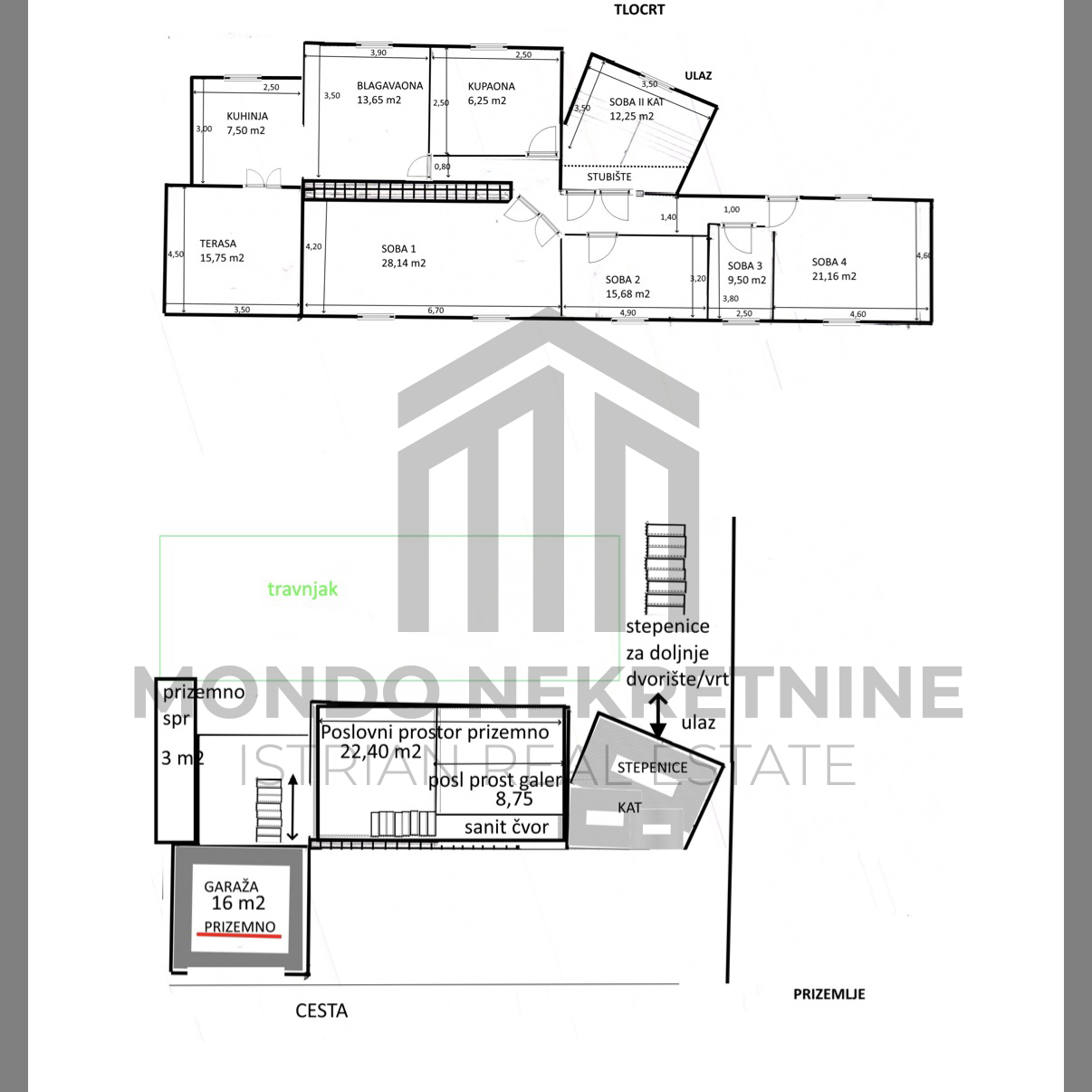 On the ground floor, there is a 30 m2 commercial space with a gallery and restroom, ideal for office use, private practice, or long-term rental. It can also be connected to the upper floor to create a single residential unit.