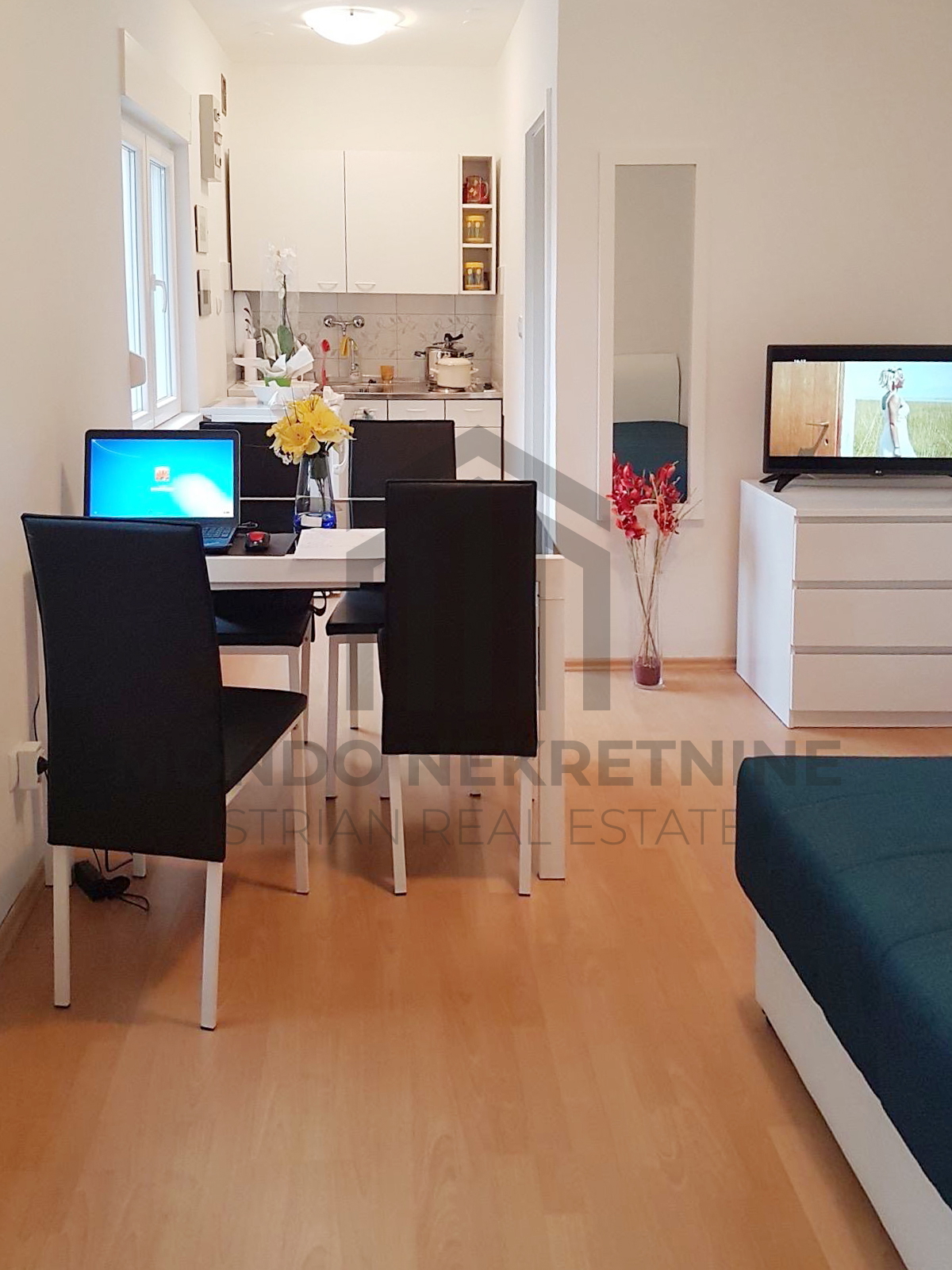 Apartman se nalazi na 1. katu objekta s vlastitim ulazom i stepenicama. Ima površinu od 40 m2 te se sastoji od jedne spavaće sobe, dnevnog boravka s kuhinjom, kupaonice s tuš kabinom i WC-om te balkona.