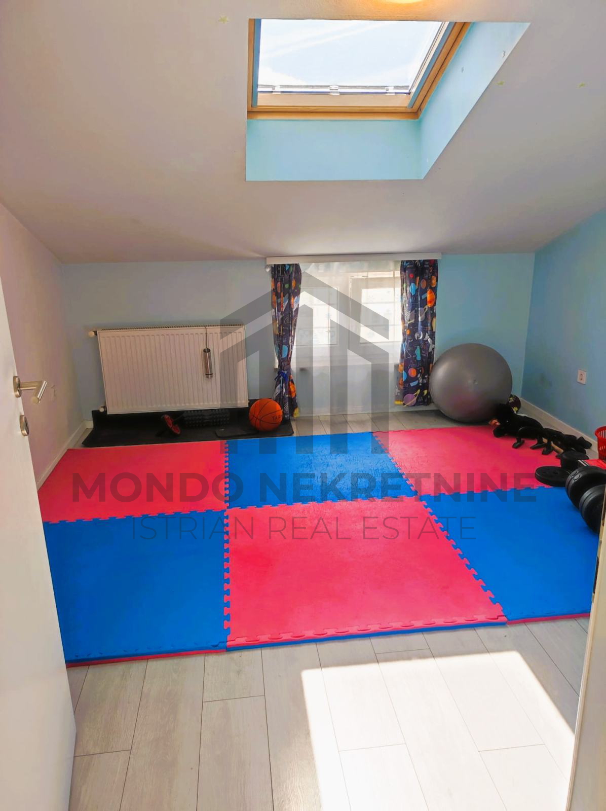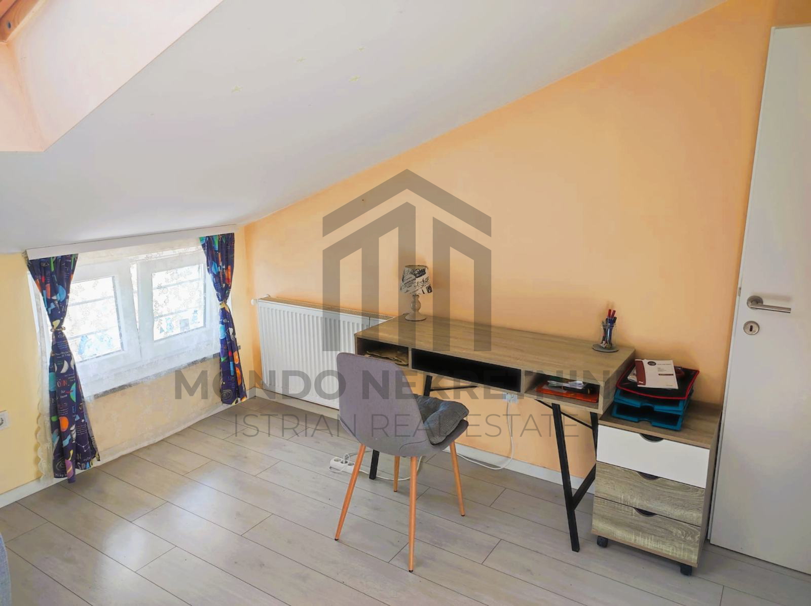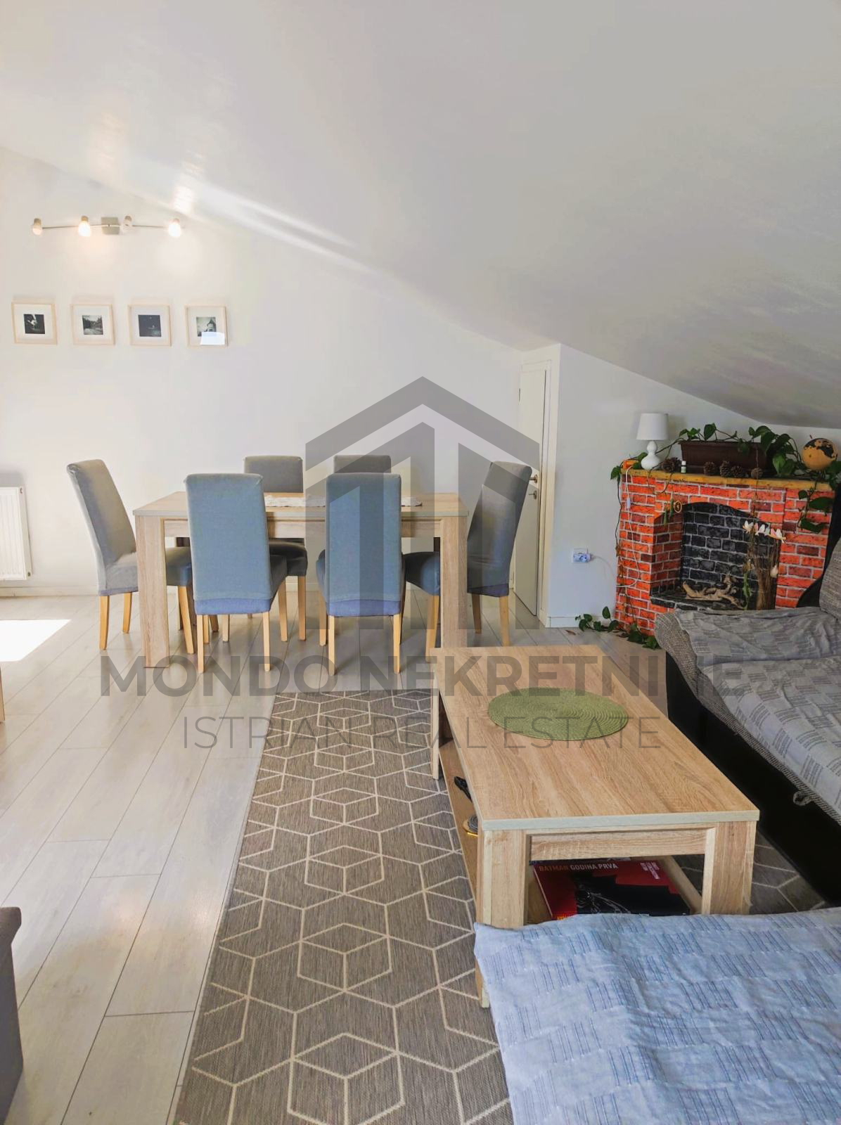 Stan se nalazi u potkrovlju te zahvaljujući Velux krovnim prozorima obiluje prirodnim svjetlom, što prostoru daje dodatnu toplinu i ugodnu atmosferu.