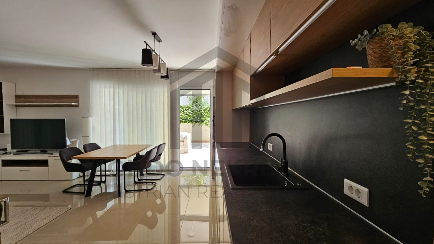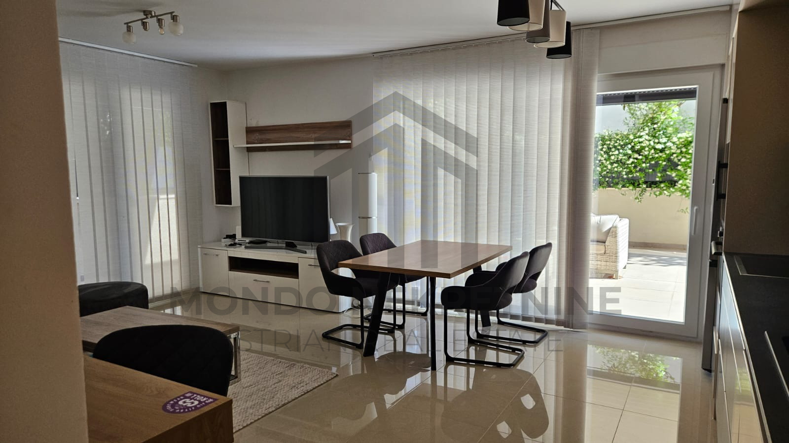 Posebna vrijednost ove nekretnine je prostrana terasa s natkrivenim i nenatkrivenim dijelom, na kojoj je postavljena bio-klimatska pergola dimenzija 4x4 m s pomičnim termo i zvučno izoliranim panelima, LED rasvjetom i dimerom.