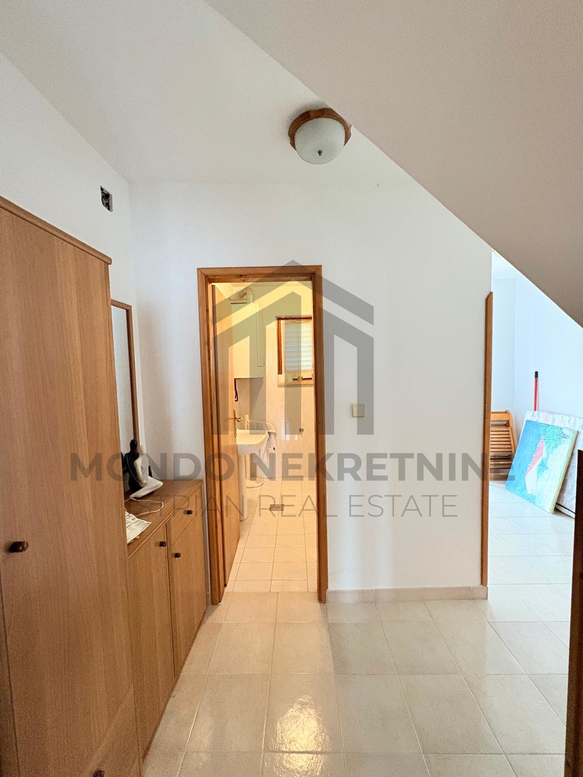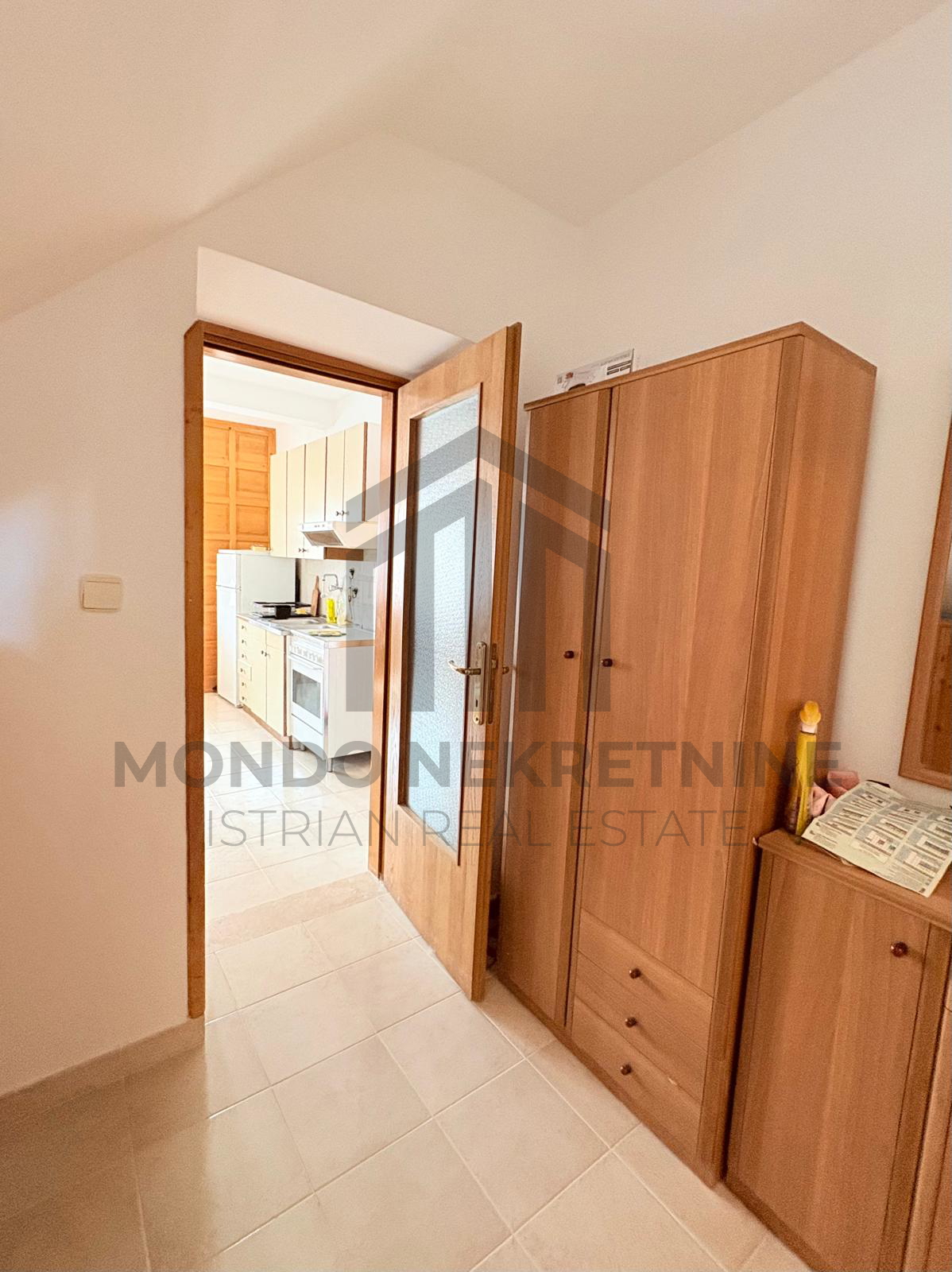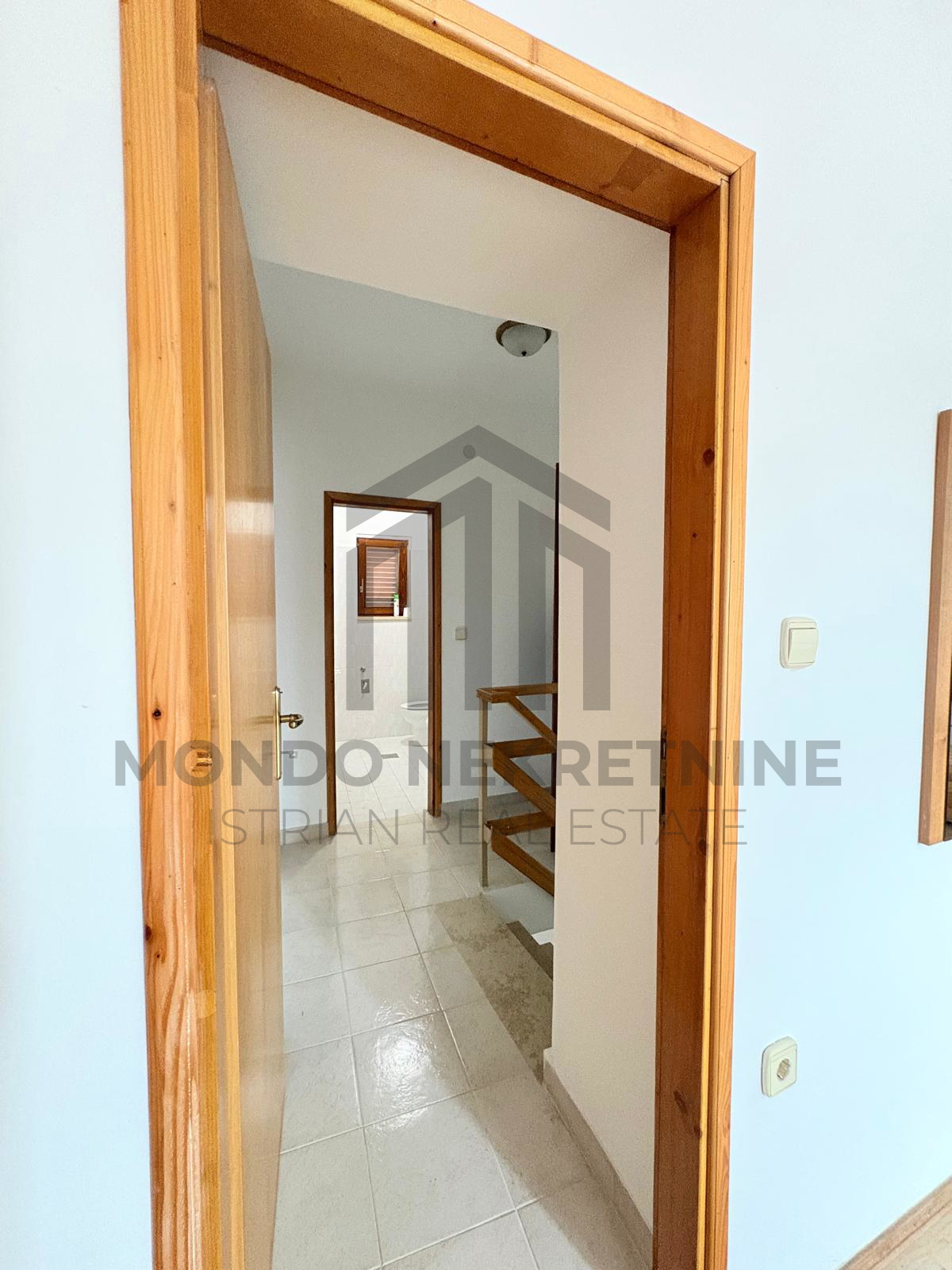 Na katu se nalaze hodnik, toalet, prostrana spavaća soba te dodatna prostorija iz koje se izlazi na terasu s pogledom na more.